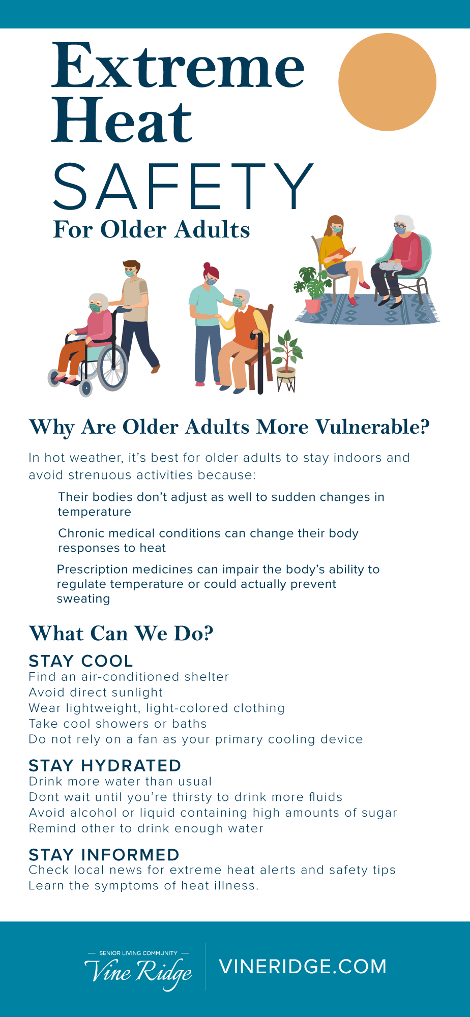 For a variety of factors older adults are more at risk for extreme heat illness.